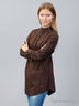 Прекрасная туника с небольшой застежкой на пуговицы. Модель свободного кроя, с длинными рукавами.