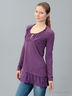 Туника с длинными рукавами и округлым вырезом горловины. Низ изделия декорирован рюшами. Отличный вариант на каждый день.