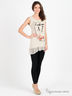 Детали: округлый вырез горловины, короткий рукав, шифоновая оборка, полочка украшена аппликацией и декоративными элементами