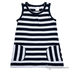 Удобная туника свободного покроя без рукавов с округлым вырезом горловины. Модная расцветка в морском стиле.