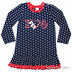 Нарядная туника темно-синего цвета с ярко-красными вставками. На груди красивый принт с небольшими бантиками. Низ туники декорирован рюшами. Эта модель понравится любой девочке.