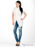 Детали: отложной воротник-стойка, короткие рукава, застегивается на перламутровые пуговицы со стразами, сзади талия украшена серебристой цепочкой со стразами, низ присборен на кулиску
