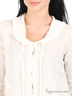 Детали: круглый вырез с отложным воротником на кулиске, рукава 7/8, спереди застегивается на пуговицы, оригинальный крой