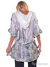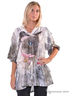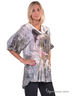 Воздушная блуза из натурального шелка с округлым вырезом горловины и укороченным рукавом. Кулиска на уровне талии. Изделие украшено рисунком. Яркий вариант на каждый день.