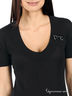 Детали: круглый вырез; кроткий рукав; снизу изделие дополнено широкой резинкой в рубчик; декорировано оригинальной брошью-бантиком
