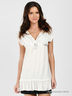 Детали: V-образный вырез с запахом; низ изделия дополнен воланом; грудь подчеркнута атласной лентой с бантом и стразами; на полочке оригинальные оборки