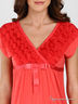Детали: V-образный вырез с запахом; низ изделия дополнен воланом; грудь подчеркнута атласной лентой с бантом и стразами; на полочке оригинальные оборки