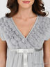 Детали: V-образный вырез с запахом; низ изделия дополнен воланом; грудь подчеркнута атласной лентой с бантом и стразами; на полочке оригинальные оборки