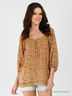 Детали: круглый вырез; рукав 3/4; застегивается на пуговицы на полочке; декорирована простроченными складками; оригинальный принт