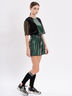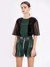 Туника прямого кроя с коротким рукавом, круглым вырезом. Модель декорирована вставкой из эко-кожи.