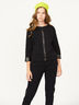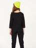 Туника с рукавом 3/4, круглым вырезом. Модель дополнена пайетками и вставками из эко-кожи.