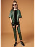 Туника прямого кроя с коротким рукавом, круглым вырезом. Модель декорирована вставкой из эко-кожи.
