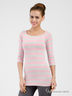 Замечательный выбор в пользу комфорта и креативного стиля - лонгслив из комфортного полотна. Изделие выполнено в симпатичной расцветке, декорировано контрастным рисунком в полоску. Вырез горловины округлый, рукава 3/4.