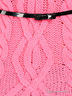 Яркая туника из эластичного трикотажа крупной вязки. Воротник-гольф. Длинные прямые рукава с манжетами. По центру полочки проходит рисунок из переплетающихся полос. Две шлевки для ремня. Изделие дополнено тонким кожаным ремешком с бантиком.