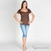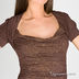 Великолепная женственная туника оригинального кроя с коротким рукавом. Спереди, за счет комбинации тканей-компаньонов с разной отделкой создается эффект, будто на Вас открытый топ и короткое болеро с рукавом-фонариком. Передняя часть изделия выполнена из трикотажа с золотистым блестящим напылением. На спинке отделка продумана так, чтобы продолжить идею двуслойности изделия. Оригинальной деталью служит вырез треугольной формы, обработанный трикотажной бейкой в цвет изделия. Прекрасный выбор для встречи с друзьями или похода на вечеринку.