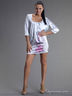 Детали: вырез каре; рукав 3/4; на полочке складки и оригинальный принт