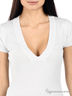 Детали: глубокий V-образный вырез; широкий пояс и резинка в рубчик