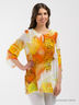 Очаровательная туника прямого силуэта. Модель с рукавами 3/4 и округлым вырезом горловины выполнена из легкой полупрозрачной ткани. Оформлено изделие эффектной расцветкой. Чудесный вариант для создания привлекательного женственного образа.
