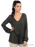 Мягкая трикотажная туника с длинными рукавами. V-образный вырез, талия подчеркнута тонкой лентой.