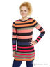 Женская туника в полоску с длинными рукавами и вырезом-лодочкой. Облегающая модель. Логотип внизу слева.