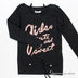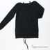 Детали: округлый вырез горловины дополнен трикотажными лентами, длинный прямой рукав, низ изделия на кулиске с лентой, два клапана с декоративными пуговицами, полочка декорирована набивным рисунком и стразами