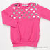 Детали: округлый вырез горловины, застежка на блестящие кнопки на плече, длинный прямой рукав, отрезной лиф декорирован аппликацией, низ изделия на трикотажной манжете