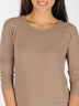 Туника облегающего кроя. Круглый вырез. Длинные рукава. Декоративный элемент вокруг горловины.