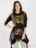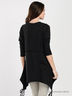 Эффектная туника свободного силуэта из плотного полувискозного трикотажа. Округлый вырез горловины. Длинные облегающие рукава. Разрезы в боковых швах дополнены шнурами в кулисках. Полочка декорирована контрастными вставками.