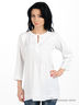 Детали: круглый вырез на кулиске и веревочке, рукава 7/8, спереди присборено, застегивается на пуговицы, украшена декоративной вышивкой