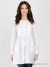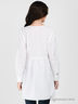 Детали: круглый вырез; длинный рукав дополнен хлястиком, позволяющим фиксировать его в коротком положении; застегивается на пуговицы спереди; два кармана; декорирована простроченными складками на полочке и вышивкой