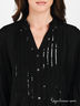Детали: небольшой ворот-стойка; длинный рукав на кулиске внизу; застегивается на пуговицы; декорирована простроченными складками и пайетками; по бокам разрезы