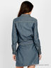 Детали: отложной ворот; на полочке застежка на пуговицы и декоративные оборки; два втачных кармана; в шлевки продет пояс