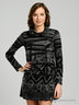 Детали: ворот-хомут, длинный прямой рукав, полочка декорирована складками; оригинальный принт