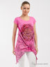Очаровательная туника с короткими рукавами и округлым вырезом горловины. Модель выполнена из легкого материала контрастной расцветки и декорирована ассиметричным низом. Изделие приталенного покроя. Прекрасный вариант для создания модного образа.