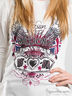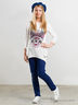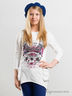 Туника с длинными рукавами и круглым вырезом. Ассиметричный низ. Накладные карманы и принт спереди. Размер по росту в см.