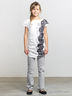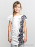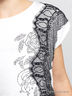 Туника прямого покроя с круглым вырезом и короткими рукавами. Стильная отделка контрастным кружевом и стразами. Размер по росту в см.