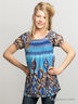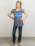 Туника с короткими рукавами и круглым вырезом. Края выреза и рукавов присборены. Красивый яркий принт в этническом стиле. Размер по росту в см.