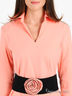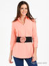 Детали: отложной воротник на небольшой стойке, V-образный вырез горловины, длинные рукава, в комплекте стильный пояс из отделочного материала, небольшие манжеты на пуговице с оригинальной сборкой
