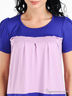 Детали: округлый вырез горловины, короткий рукав, контрастные вставки, сборки