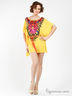 Детали: округлый вырез горловины, яркий цветочный принт, модель дополнена трикотажным пояском-косичкой.