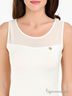Детали: круглый вырез; верх изделия дополнен шифоновой вставкой