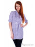 Летняя туника с рукавом 3/4 и поясом, спереди украшена рюшами. Застежка на пуговицы. Отличное решение для гардероба современной женщины.