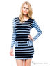 Замечательное платье-туника с округлым вырезом горловины и длинными рукавами. Спереди модель имеет накладные карманы. Изделие украшено контрастными полосками. Облегающий силуэт подчеркнет достоинства Вашей фигуры.