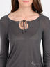 Нежная и легкая туника из тонкой низкоэластичной ткани джерси свободного силуэта с округлым вырезом горловины, дополненным завязками. Длинный рукав-реглан и низ изделия дополнены кулисками с трикотажными лентами. Отличный вариант для создания оригинального образа.