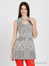 Модная туника расклешенного силуэта с круглым вырезом горловины и широкими лямками. Оригинальный вырез под воротом. Скрытая застежка на молнию на спинке. Изделие украшено рисунками. Отличный вариант на каждый день.