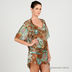 Полупрозрачная туника с вшитым пояском украшена принтами.