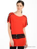 Детали: V-образный вырез на спинке, короткий рукав, плечи декорированы ремешками с клепками, в комплекте пояс