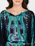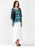 Детали: оригинальный крой; фигурный вырез горловины; цельнокроеный рукав 3/4; в отверстия продет поясок; стильный принт