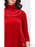 Привлекательная блузка из бархата. Рукав 3\4, воротник стойка украшен романтичными рюшами в несколько рядом. Силуэт к низу расклешенный.