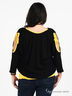 Модная туника из вискозного материала средней плотности с укороченным рукавом и округлым вырезом горловины. Сборки и вырезы на плечах. Низ посажен на манжету. Изделие украшено ручной росписью. Яркий вариант на каждый день.
